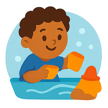 طاولات المياه، واللعب بالرمل، واستكشاف الملمس.